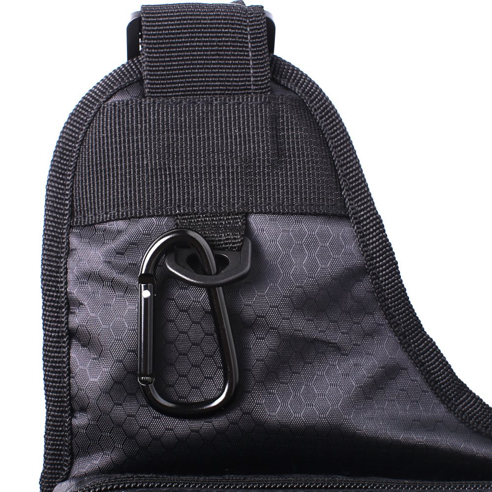 The fishing tackle bag has multiple storage compartments and exterior pockets. Storage the lures, pliers, pole, fishing boxes, wallet,keys and other accessories all organized and secure
